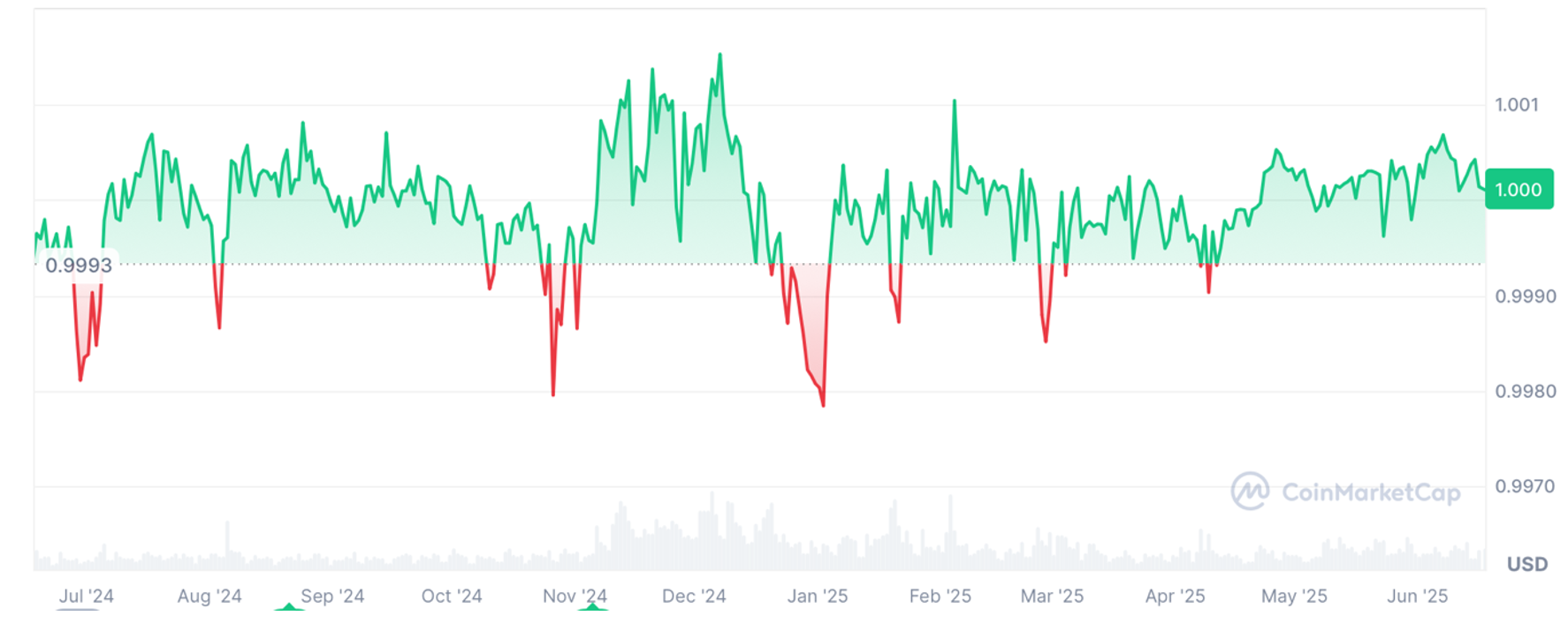 图表3:2024/06/21至2025/06/20的USDT价格走势