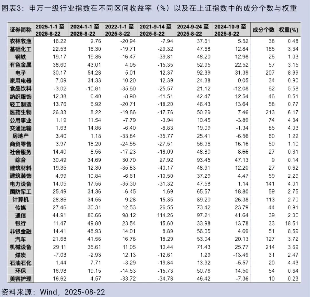 自上一轮高点至今,本轮上证指数重回3800点,主要靠大盘权重股(如银行、保险、高股息板块)拉升。这些权重股权重大,但个股涨幅有限,持有中小盘成长股、科技股的投资者未必能同步受益。