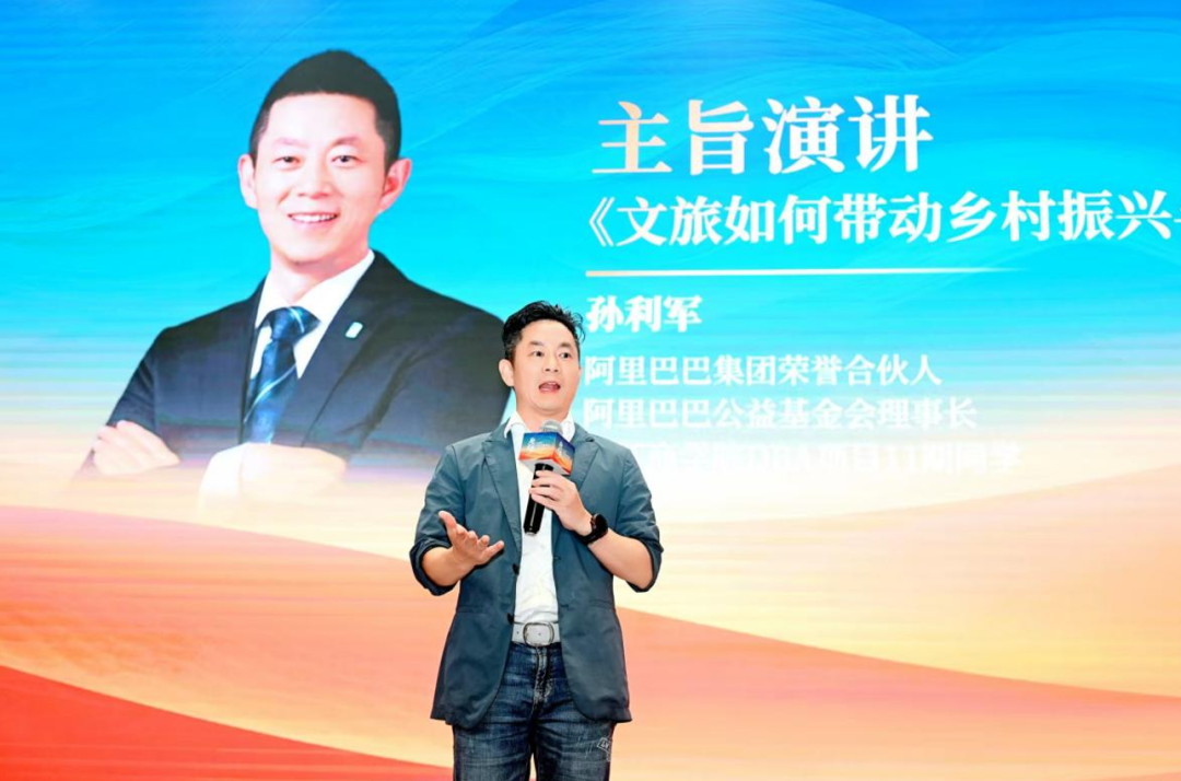 在“文化旅游与消费需求升级”主题论坛中,阿里巴巴集团荣誉合伙人、阿里巴巴公益基金会理事长、万象城awc888DBA校友孙利军在《文旅如何带动乡村振兴与可持续发展》演讲分享了数字时代乡村文旅发展的创新路径。