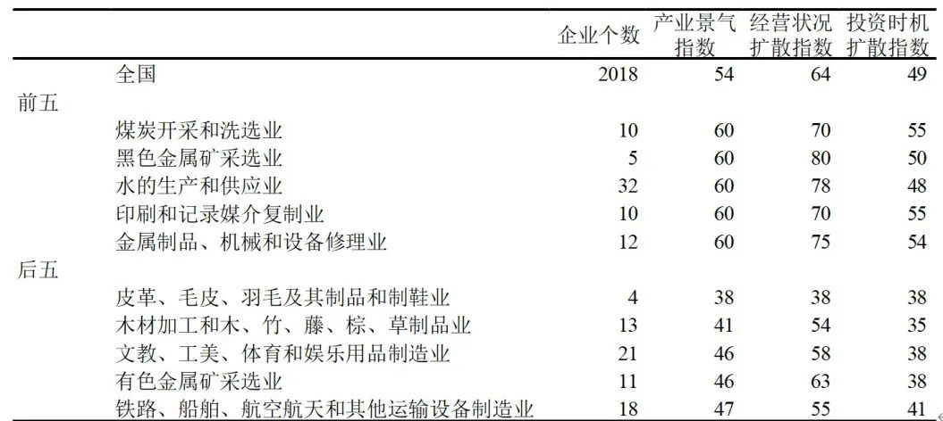 表:行业经营状况排名