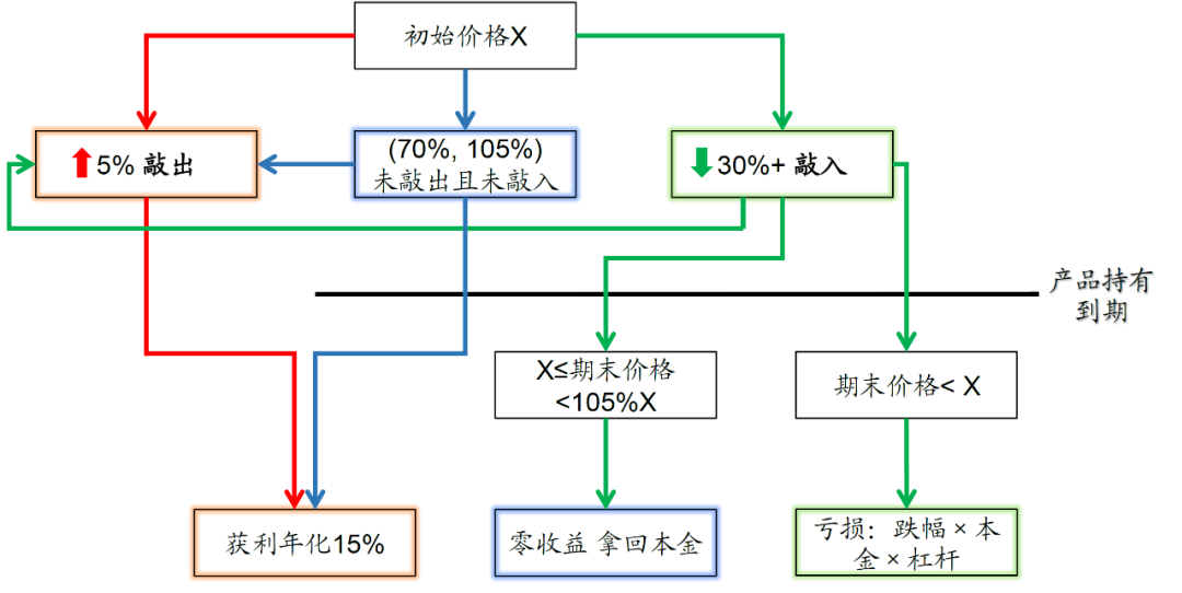三是存续期内标的资产在敲入敲出价格之间波动,未触发敲出和敲入事件,则投资者在到期日可按票面利率结算。