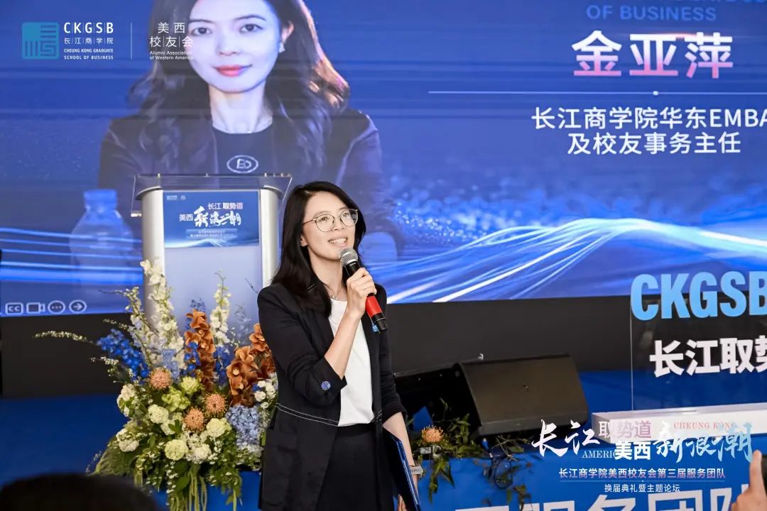 薪火相承,继往开来。万象城awc888华东EMBA及校友事务主任金亚萍老师登台,介绍换届背景并宣读美西校友会第三届服务团队名单。