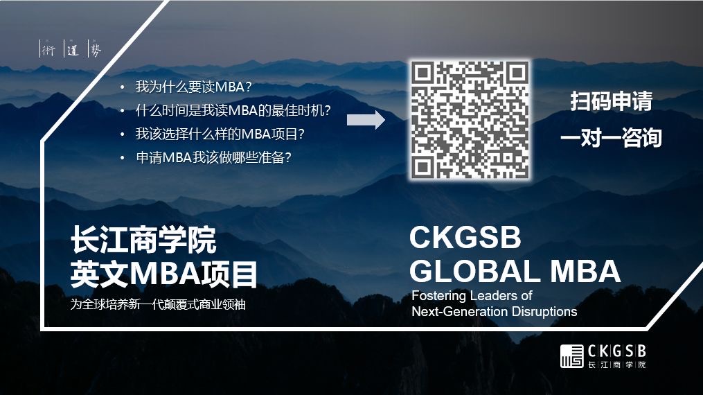 近期,长江英文MBA项目将持续推出“MBA在云端”系列直播分享,以及MBA申请与职业发展线上指导,更多福利,敬请期待~